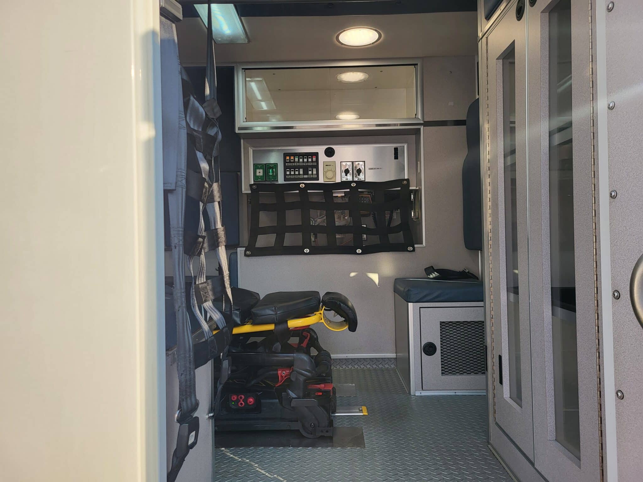 Special features: patient compartment cameras, ceiling and curbside O2 access. Stryker Power-LOAD and 2014 POWER PRO XT cot, 2009.