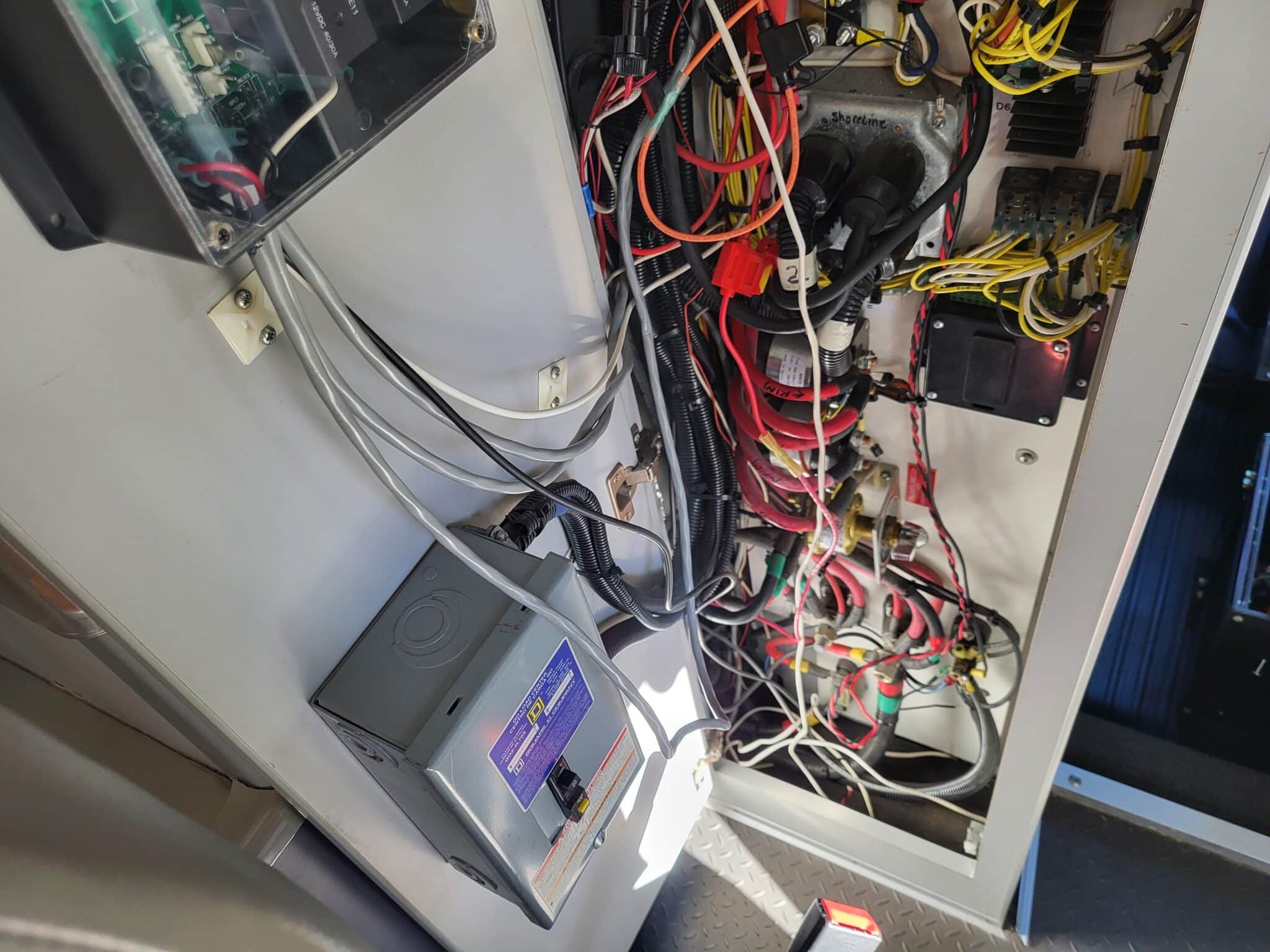 Summary of Repairs: Bioquell decontaminated, oil and filter, new fuel filters, air filter replaced, checked and lubed latches, repaired ALS cabinet, wheel simulators on, tightened screws in windows and door panels.