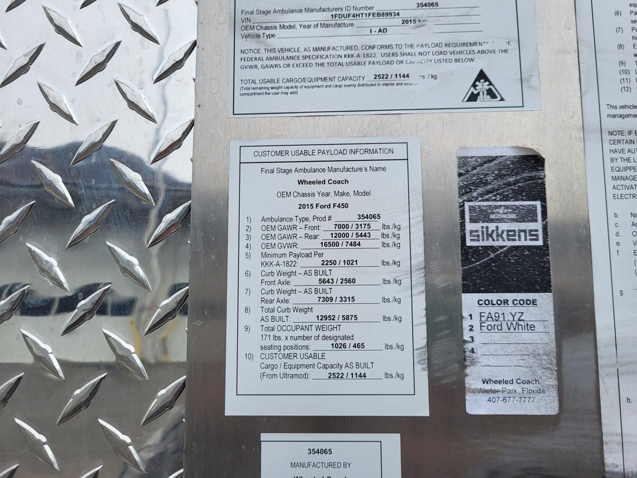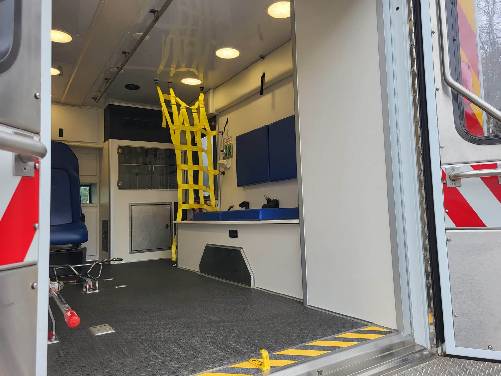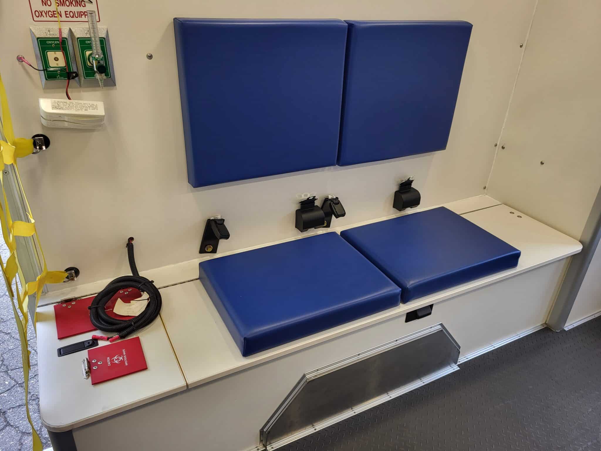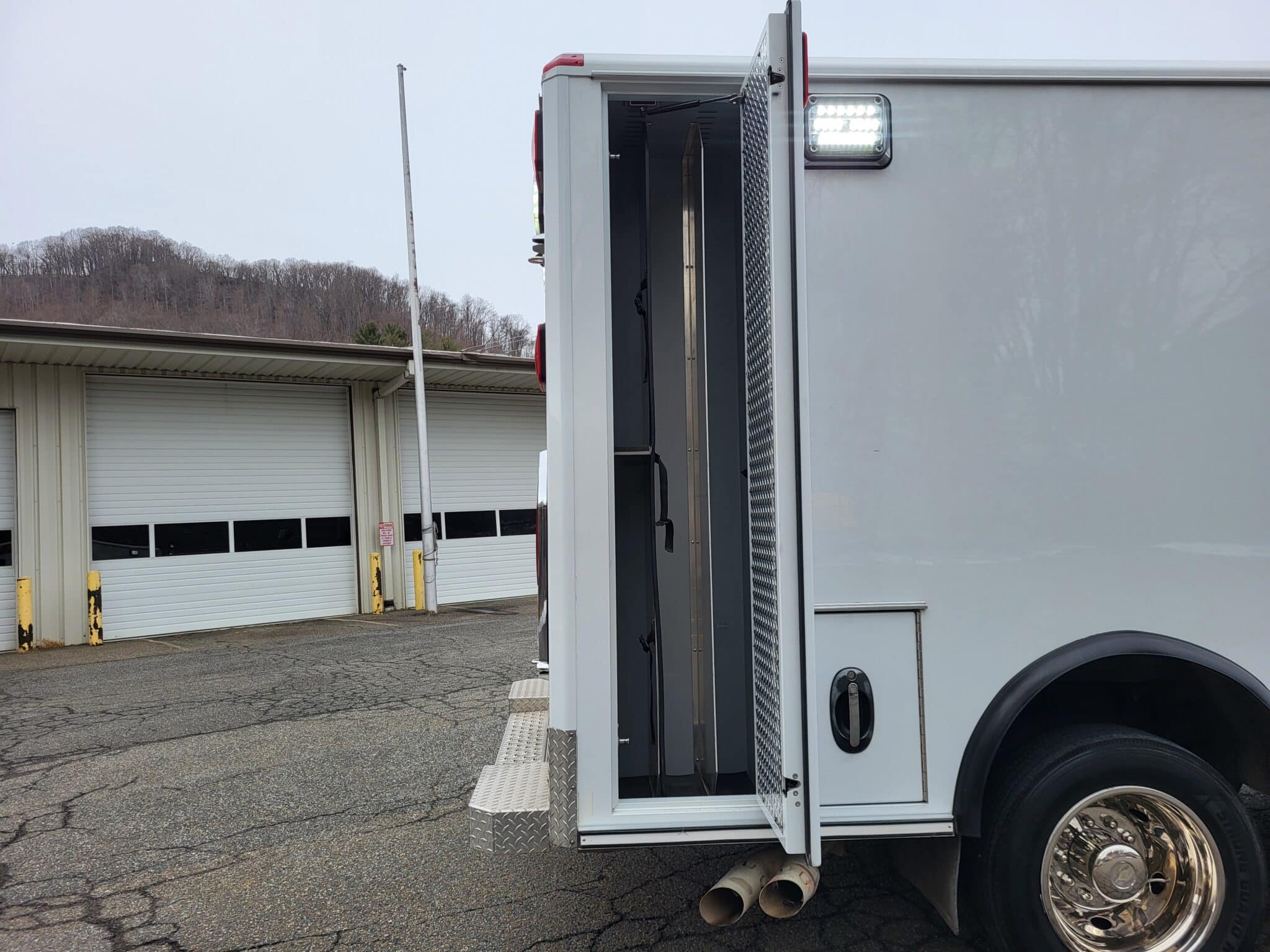 Special features: o2 lift, solid countertops, cooling cabinet, curbside O2 access, air ride with rear door drop controls, carbon monoxide sensor, kussmaul auto eject, kwiki step, Stryker antler and lock bar retention system.