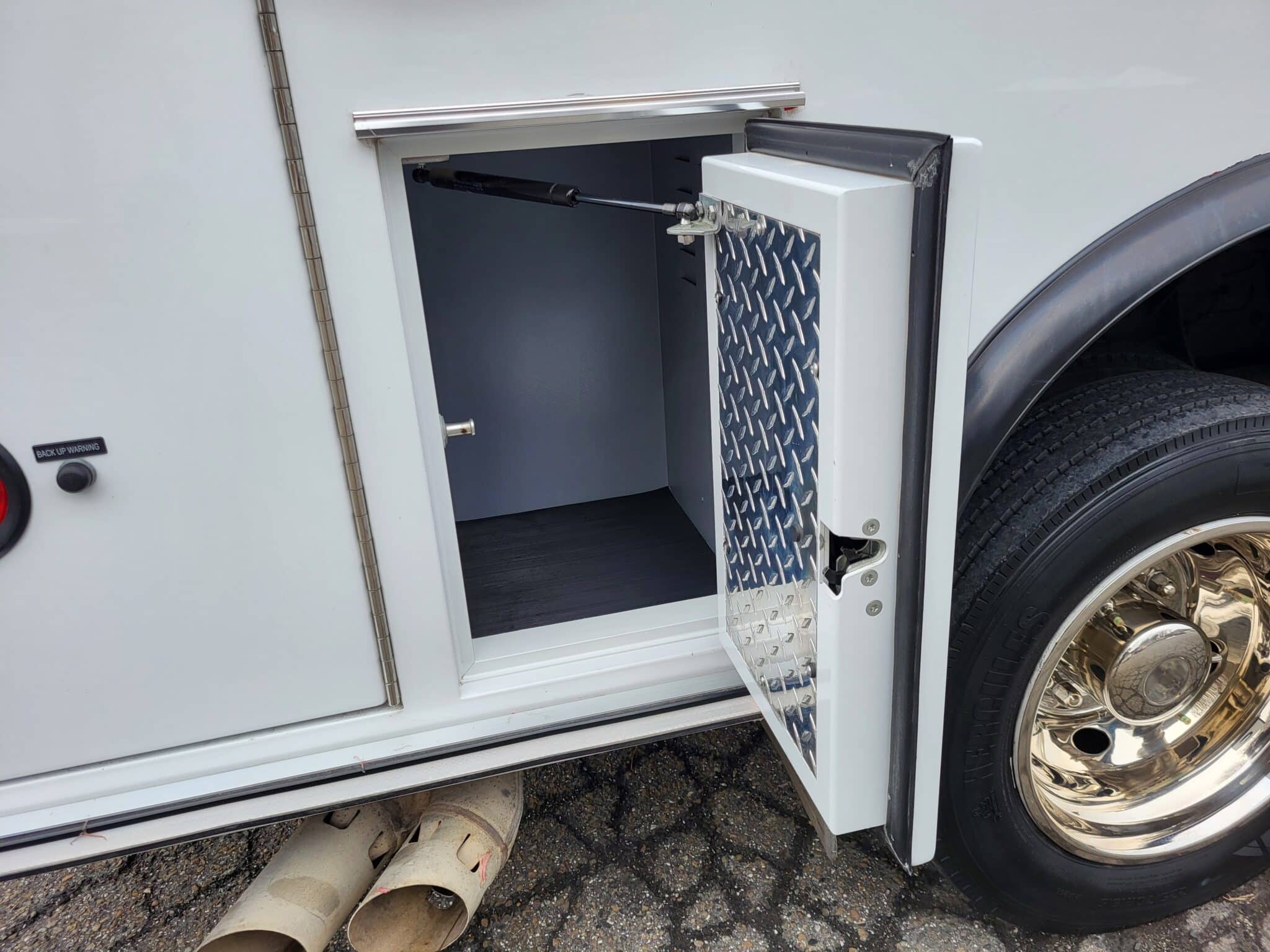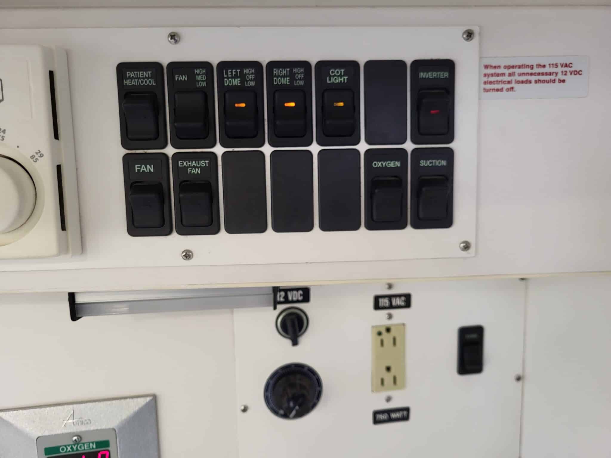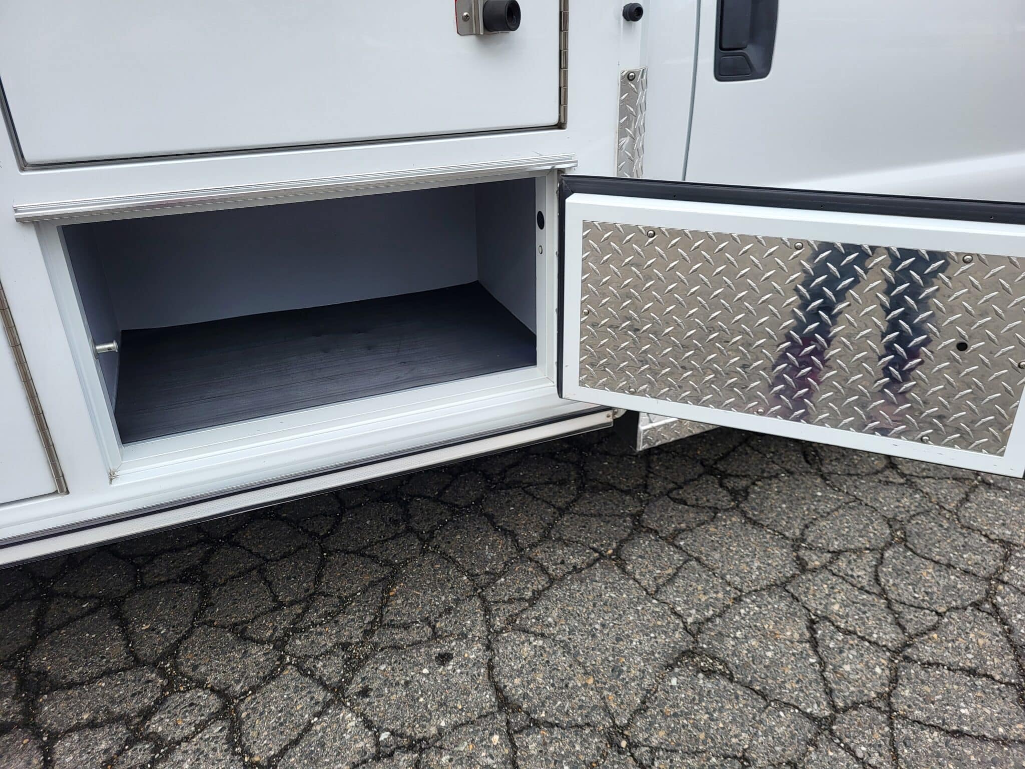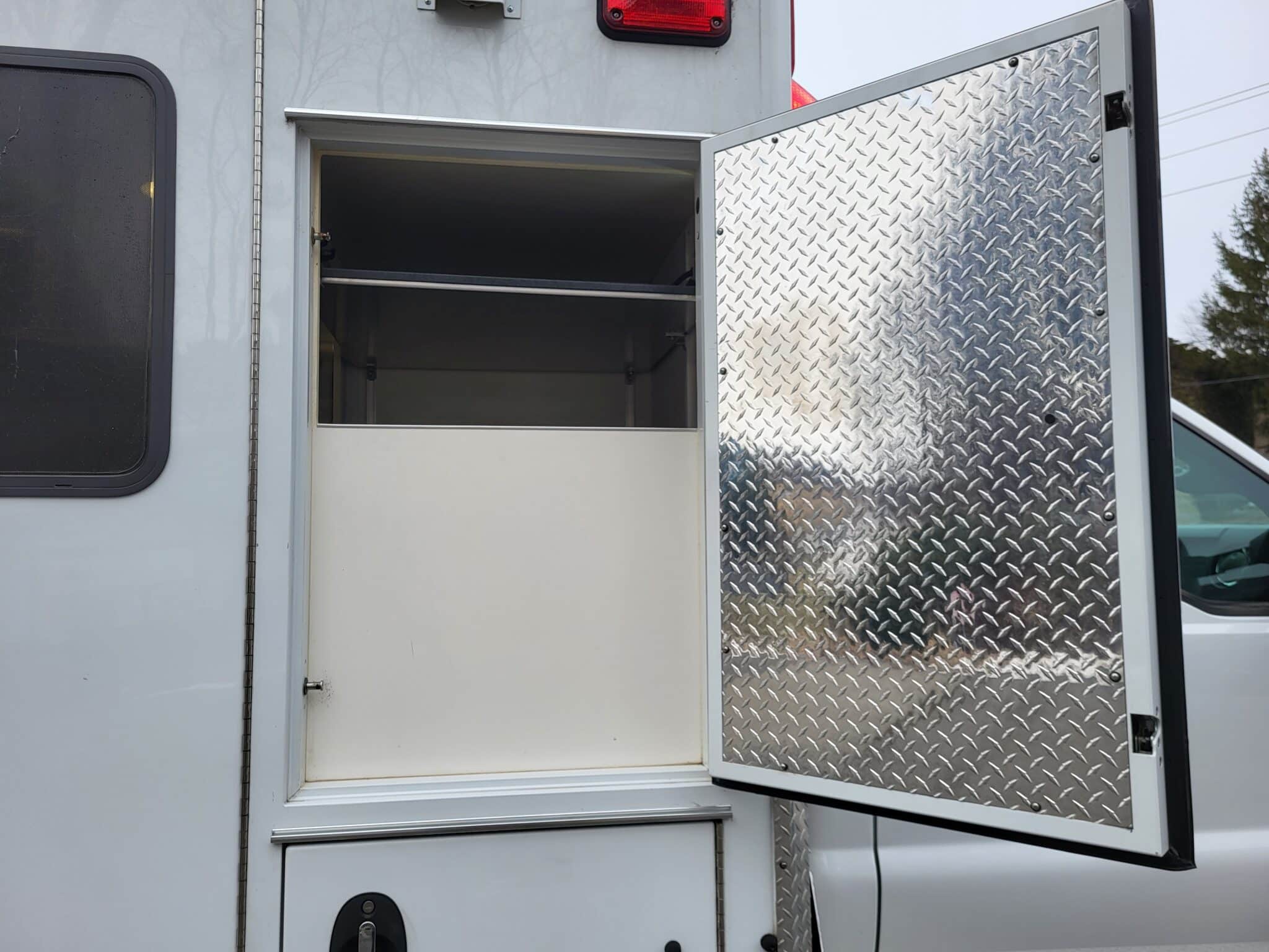 Special features: o2 lift, solid countertops, cooling cabinet, curbside O2 access, air ride with rear door drop controls, carbon monoxide sensor, kussmaul auto eject, kwiki step, Stryker antler and lock bar retention system.