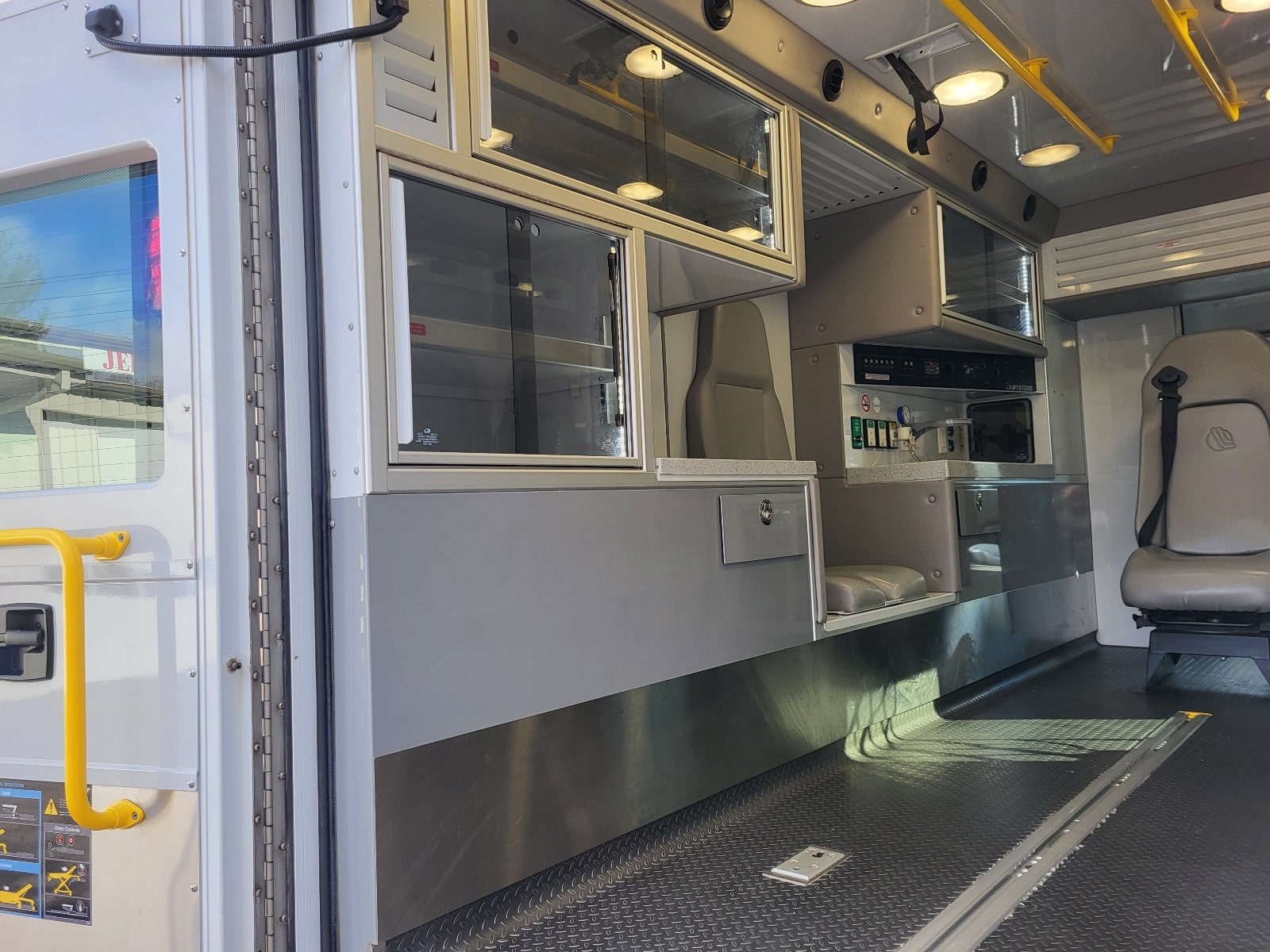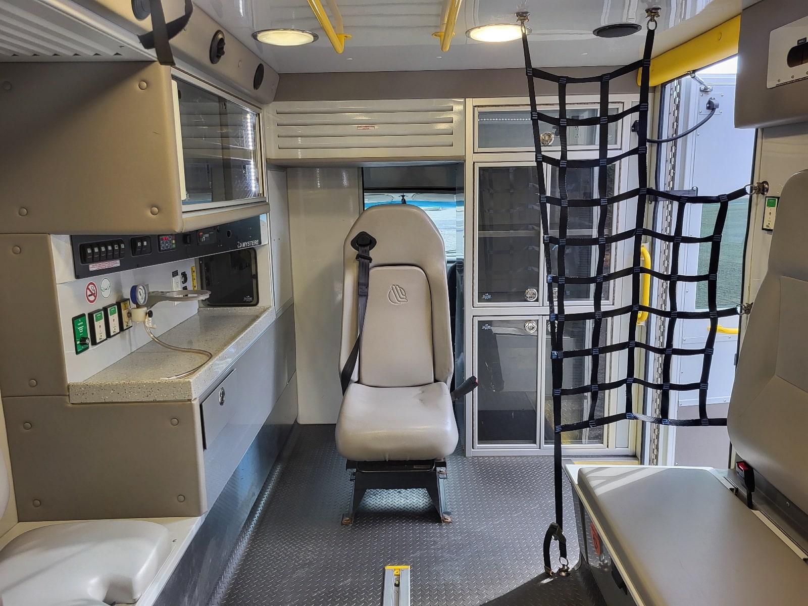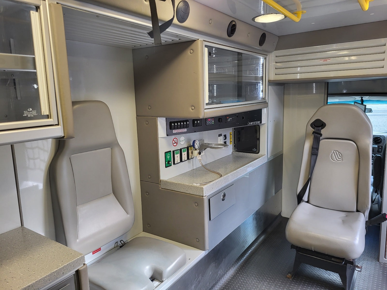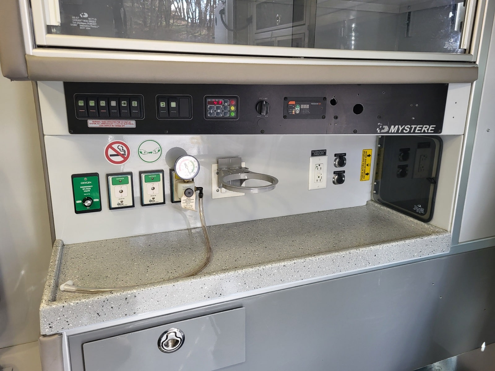 Special features: Ducted HVAC, solid surface countertops, patient compartment camera, Stryker Universal floor plate.