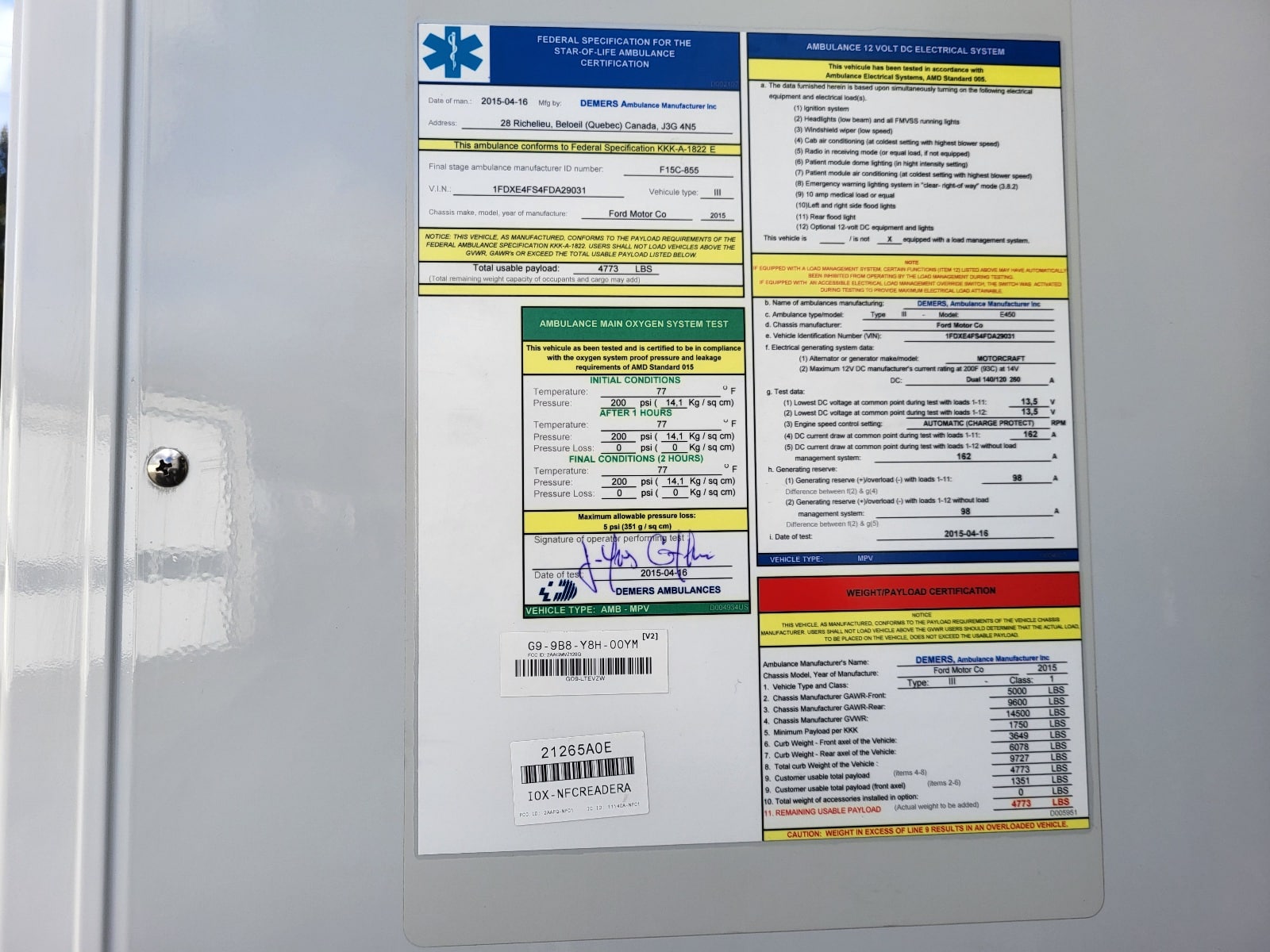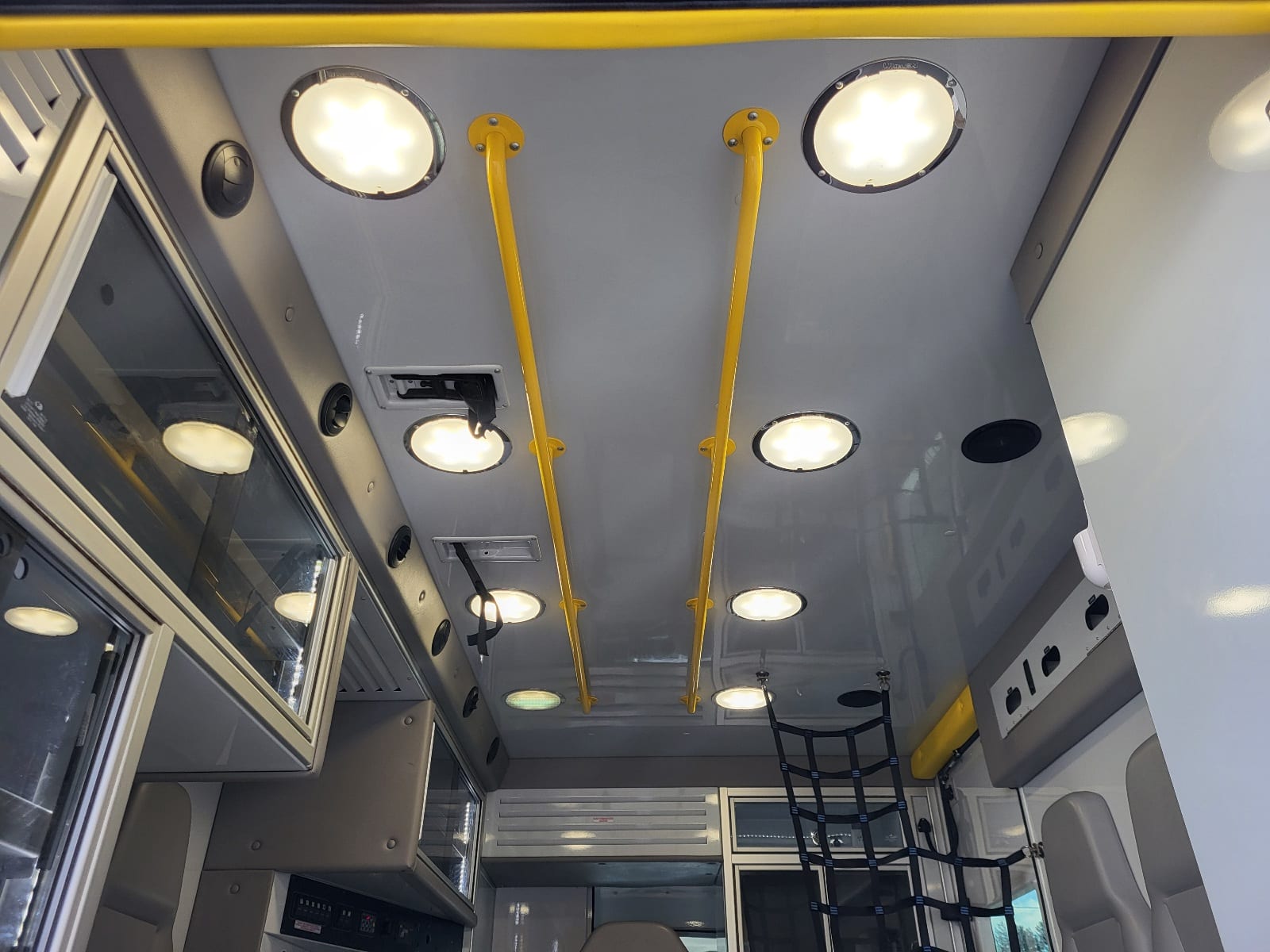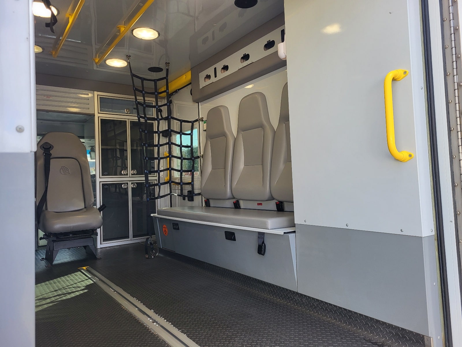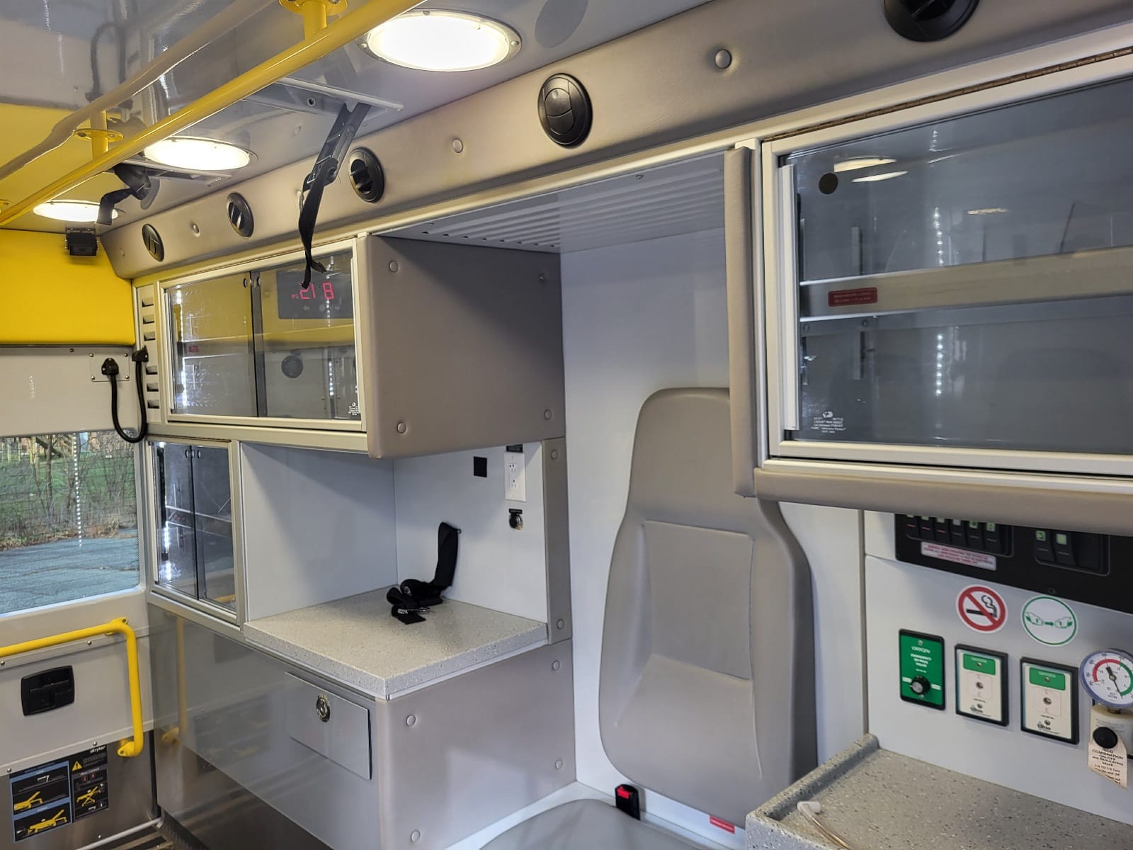 Special features: Ducted HVAC, solid surface countertops, patient compartment camera, Stryker Universal floor plate.