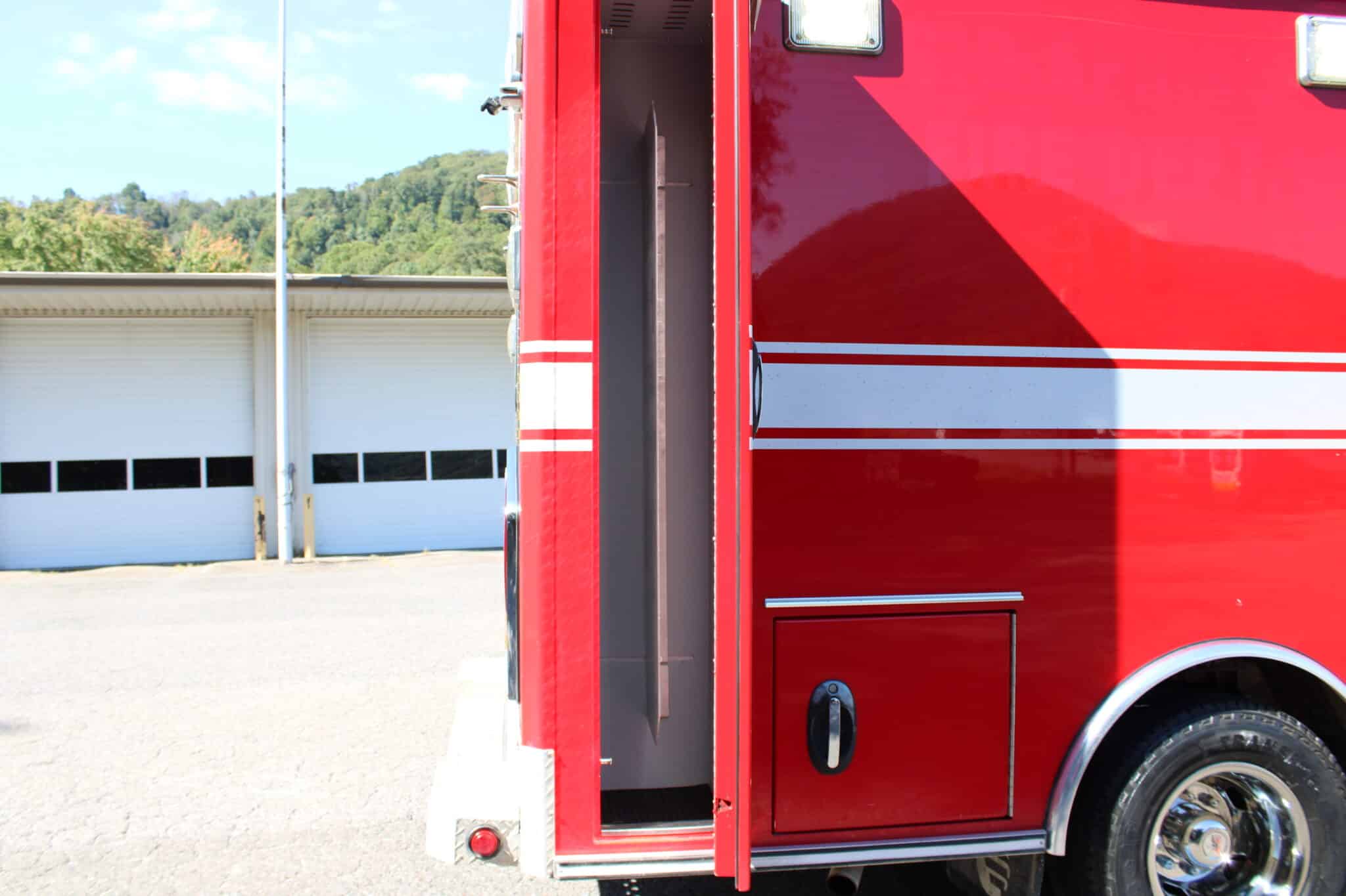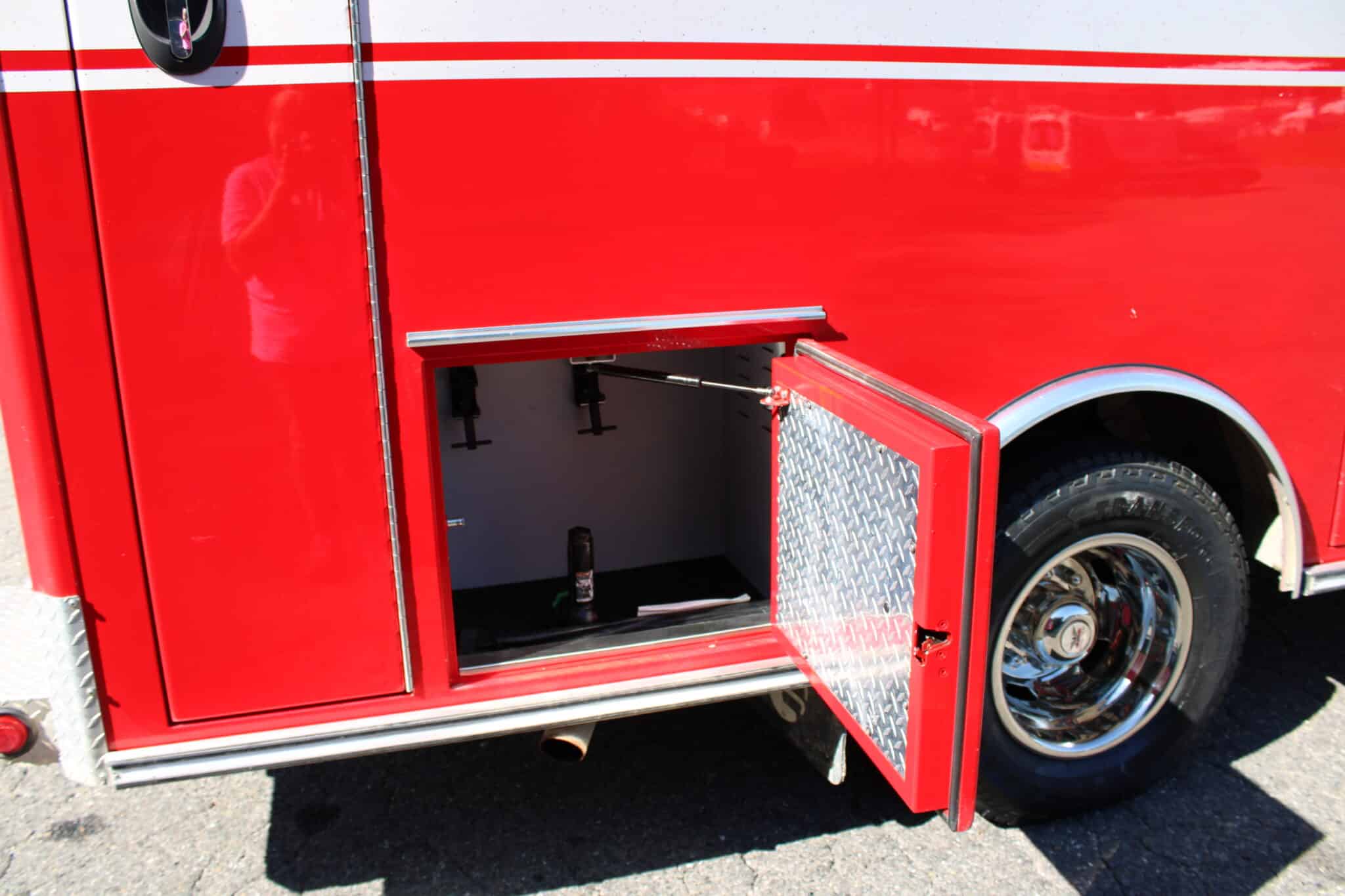 Box originally manufactured by Wheeled Coach in 2013, remounted in 2018 to this Chevy chassis.