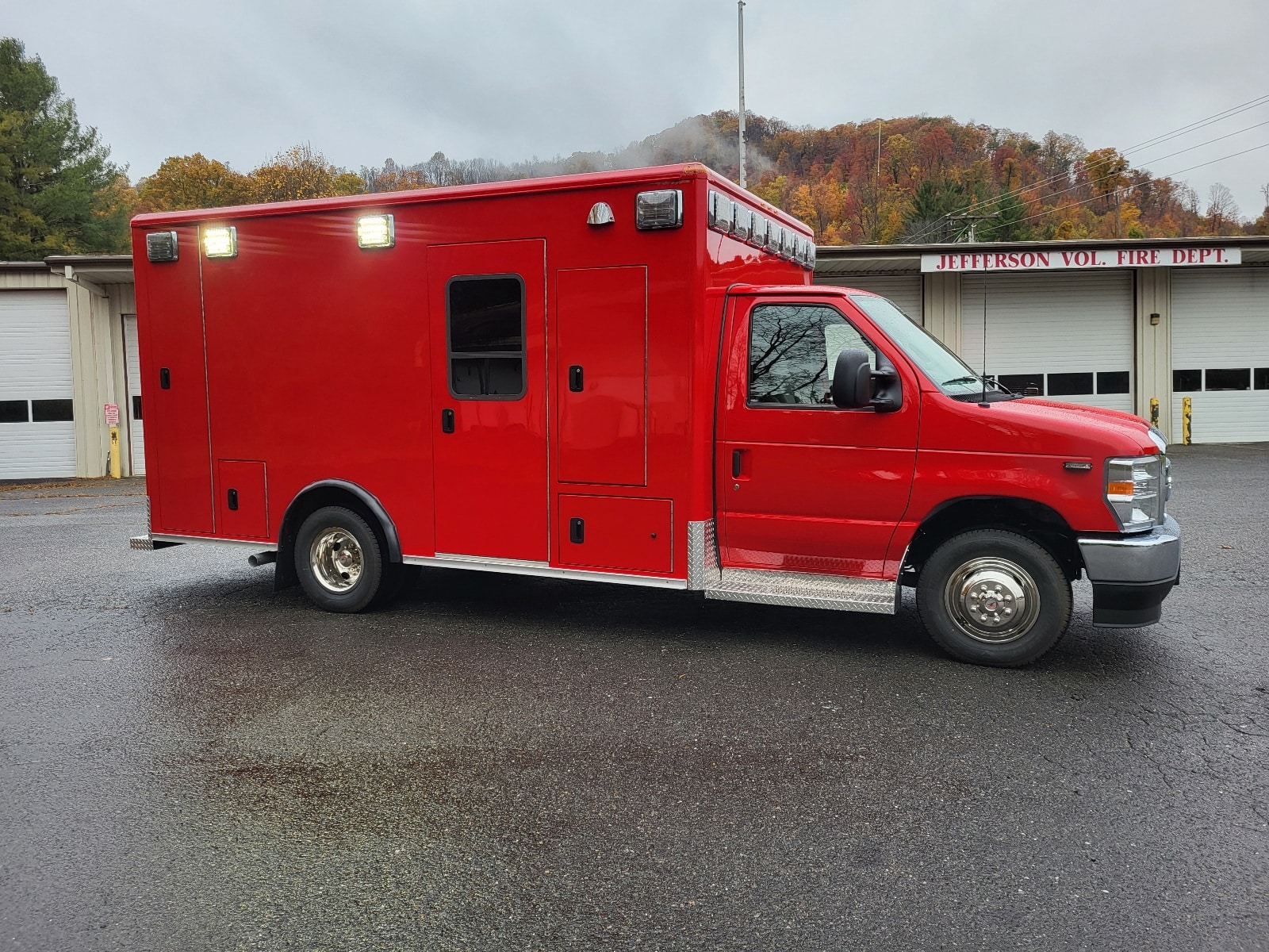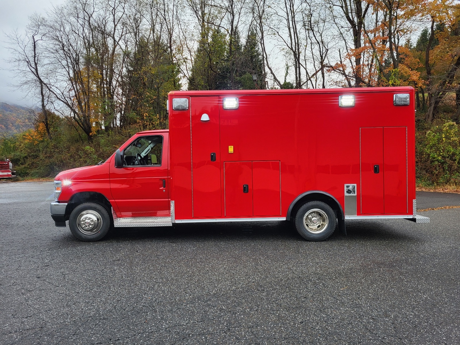 New Ford E450 ambulance prep chassis with professionally remounted Wheeled Coach module.