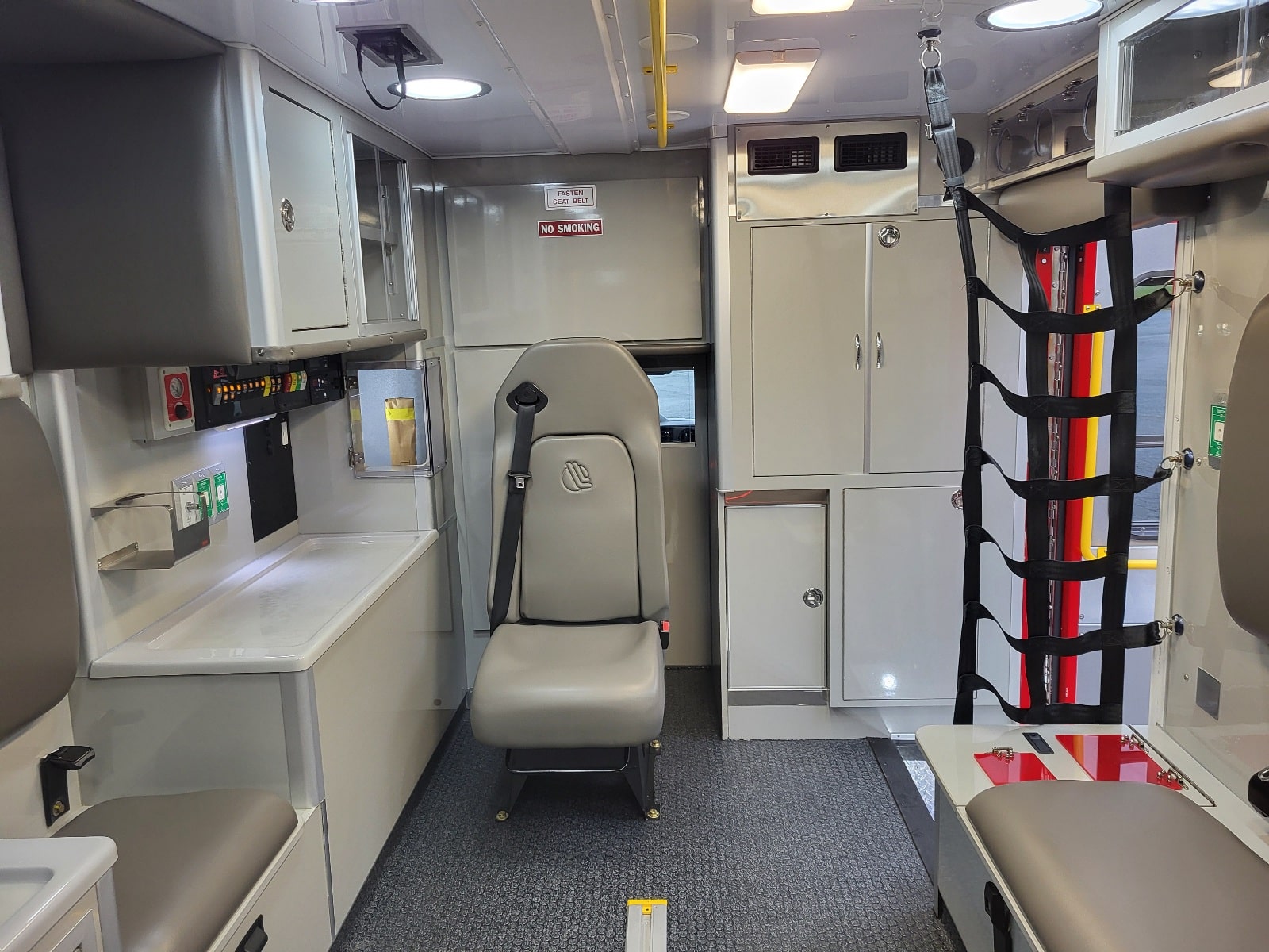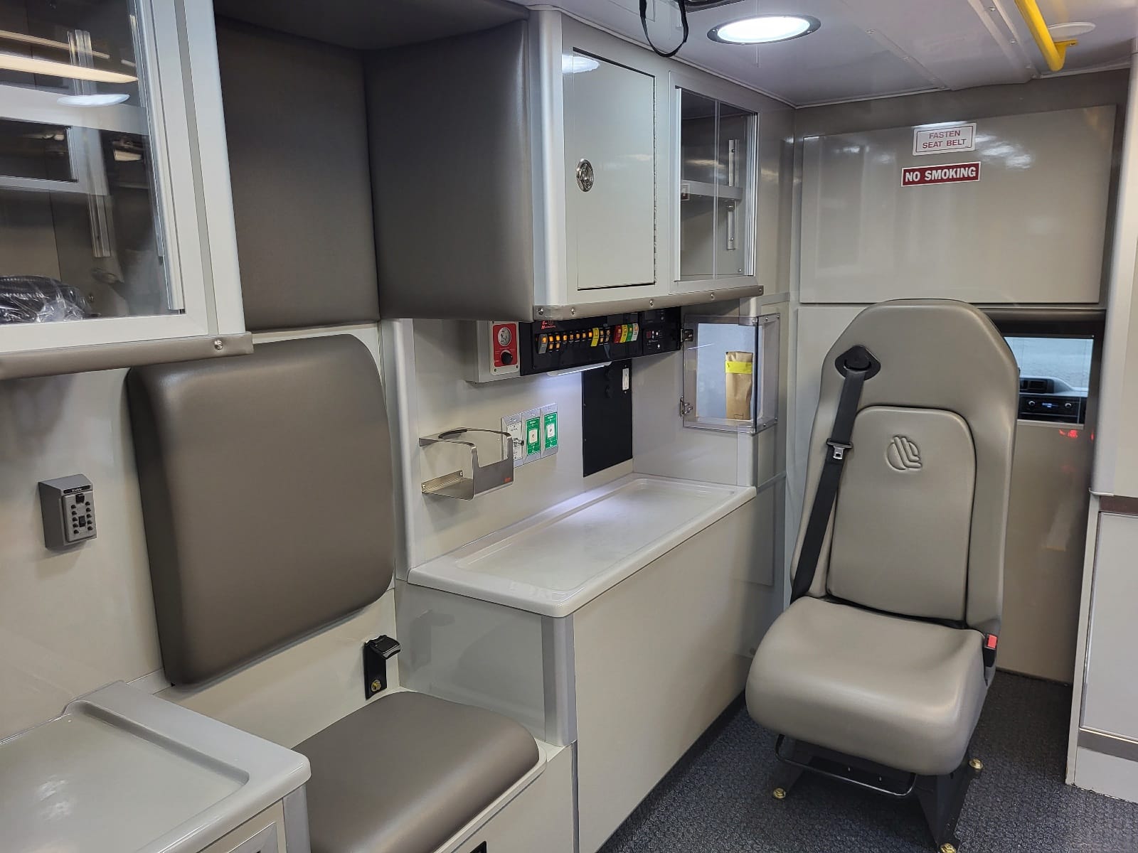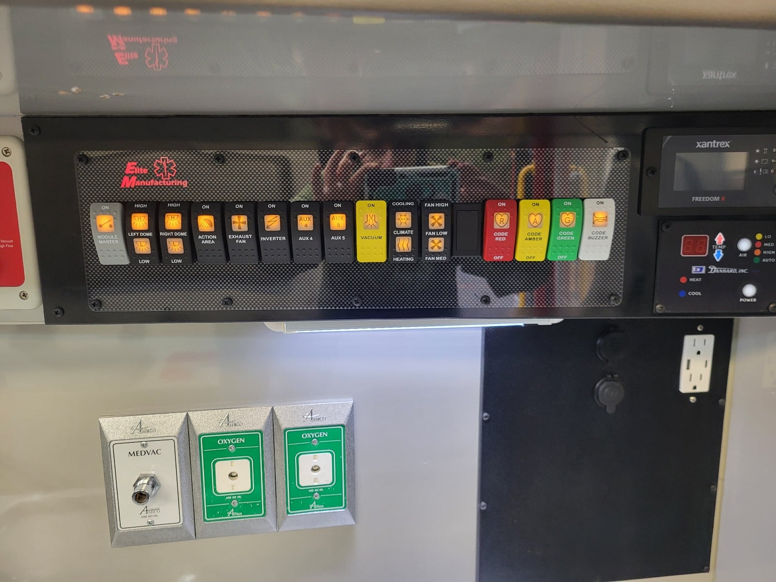 Special features: Electric Door locks on module, Curbside O2, Stryker Floor Plate with Wiring, Digital HVAC Control, Custom Console.