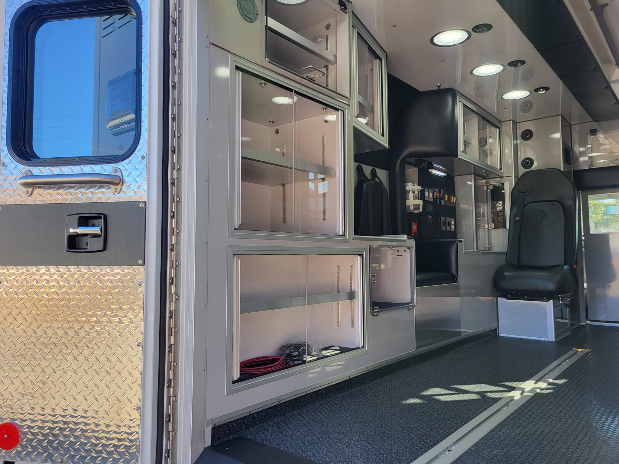 All of our remounts are top quality: New RCTronic Electrical systems, new control panels, all New Lights and Sirens, sanded down and certified Sikkens paint process, New Lonseal Floors, New HVAC systems, and much more. Warrantied, CAAS and more.