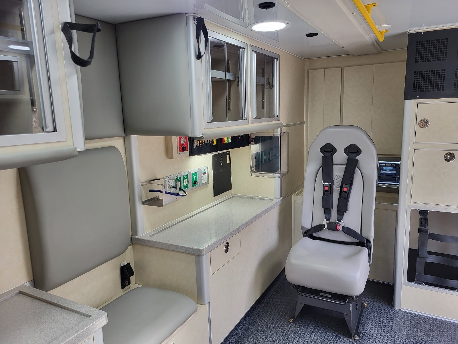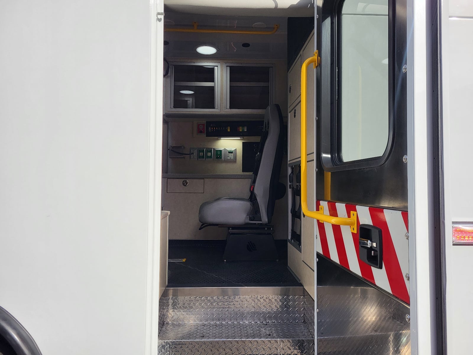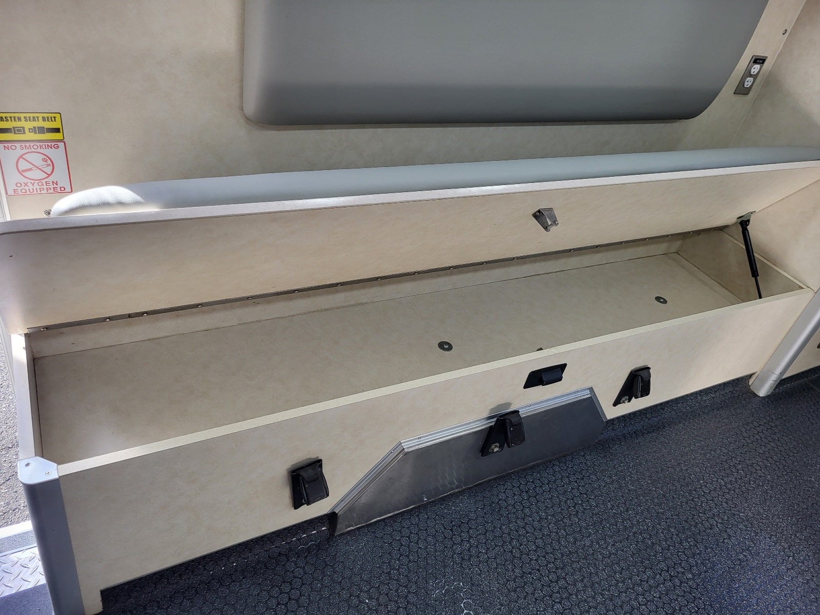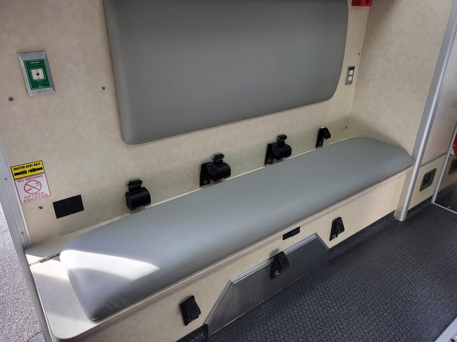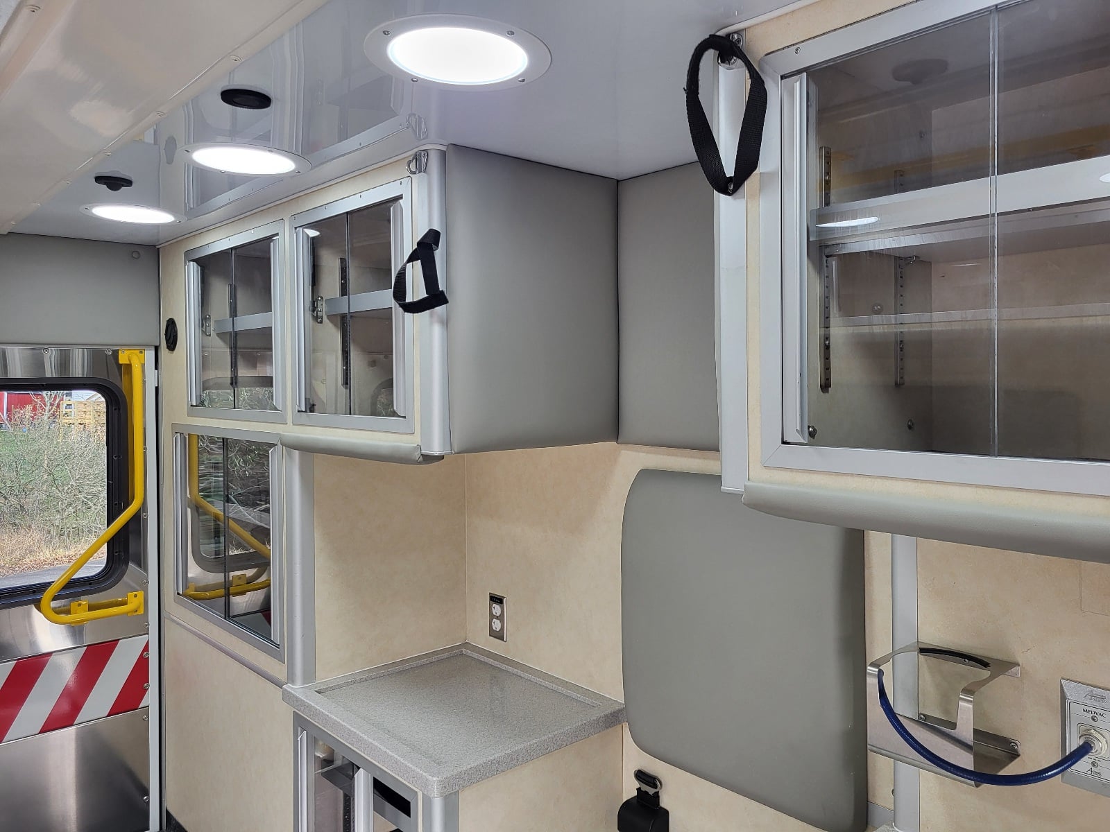 Special features: Liquid Spring system, electric O2 tank lift, Stryker Floor Plate with Wiring, curbside O2 access, vaulted HVAC, solid countertops.