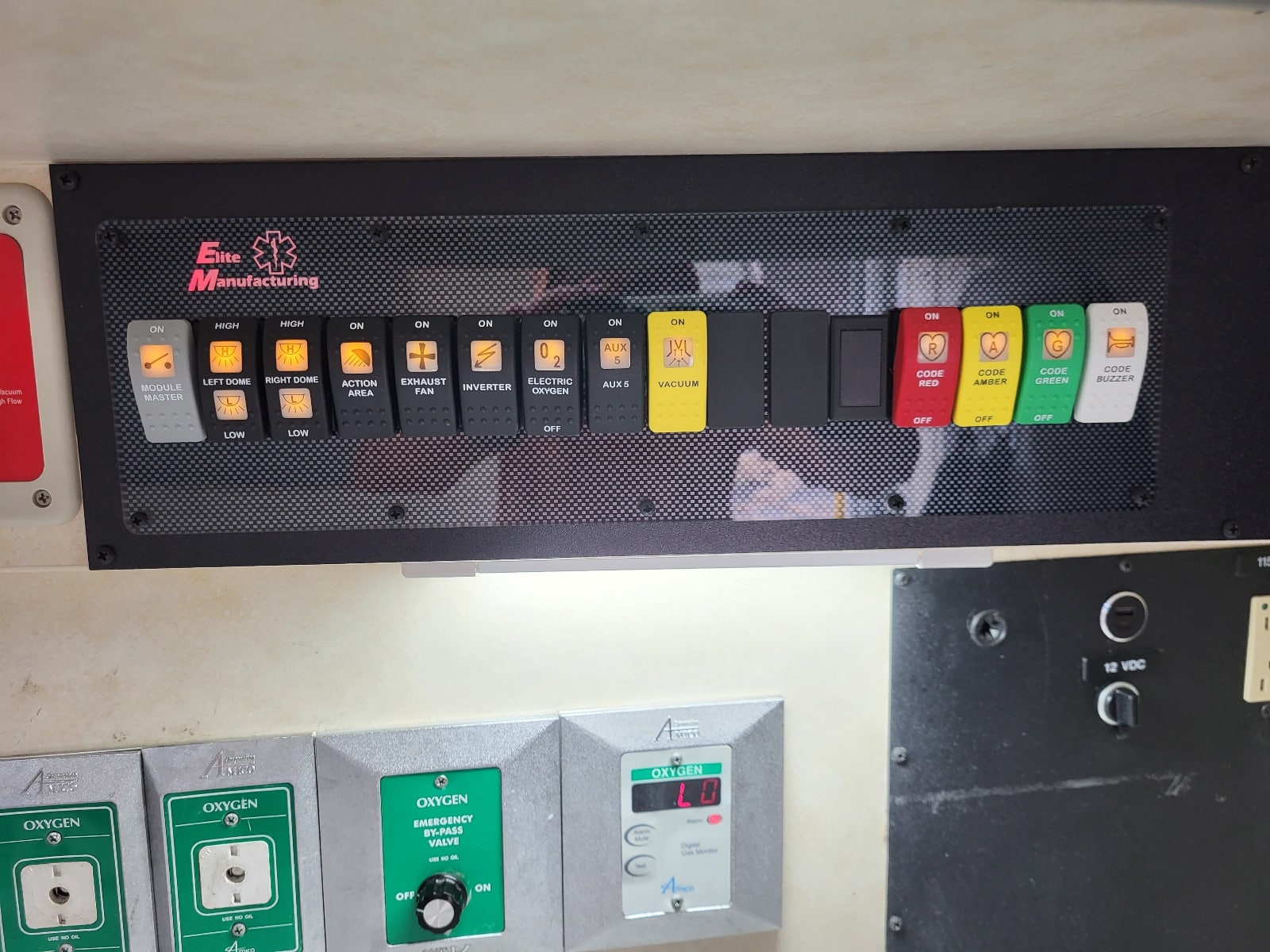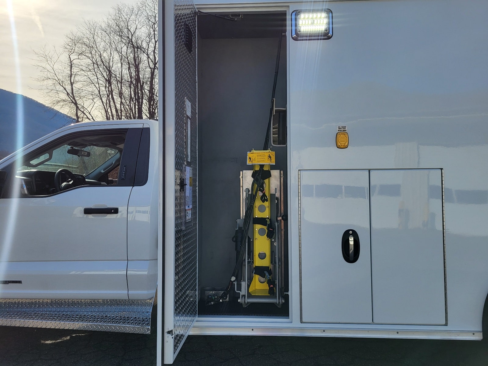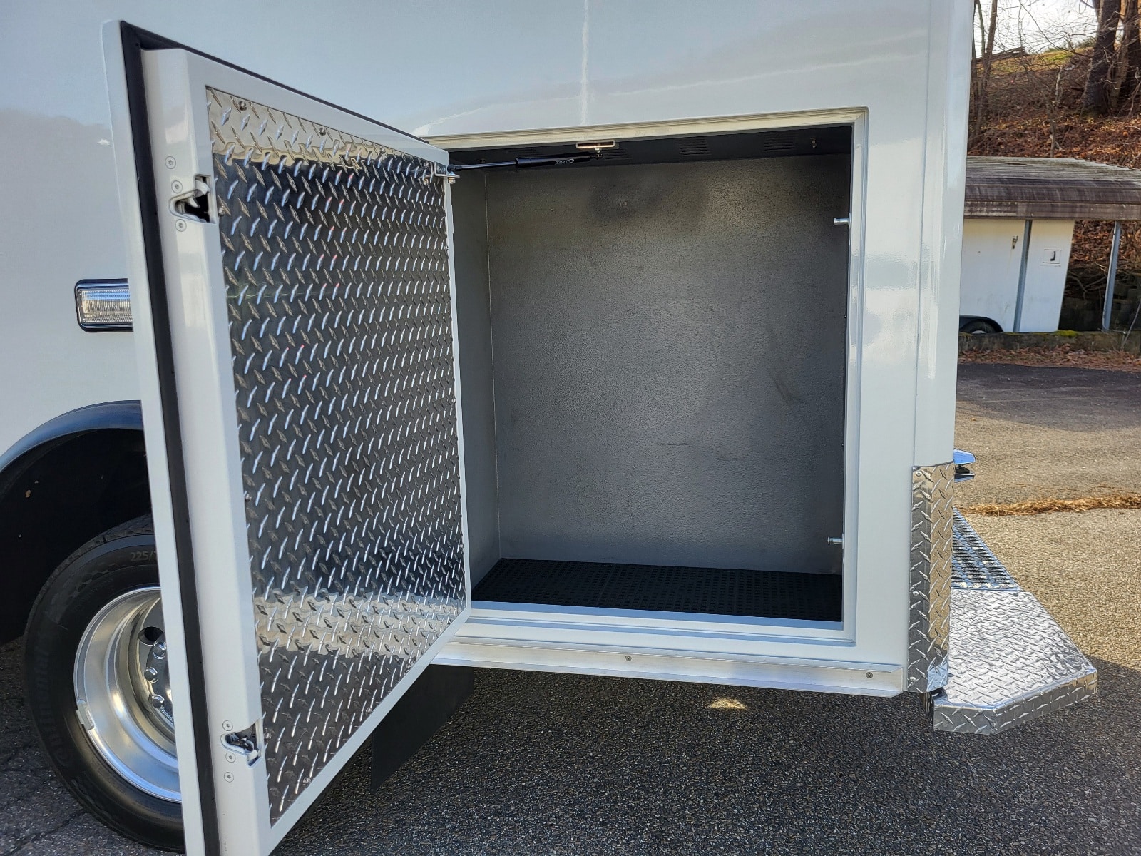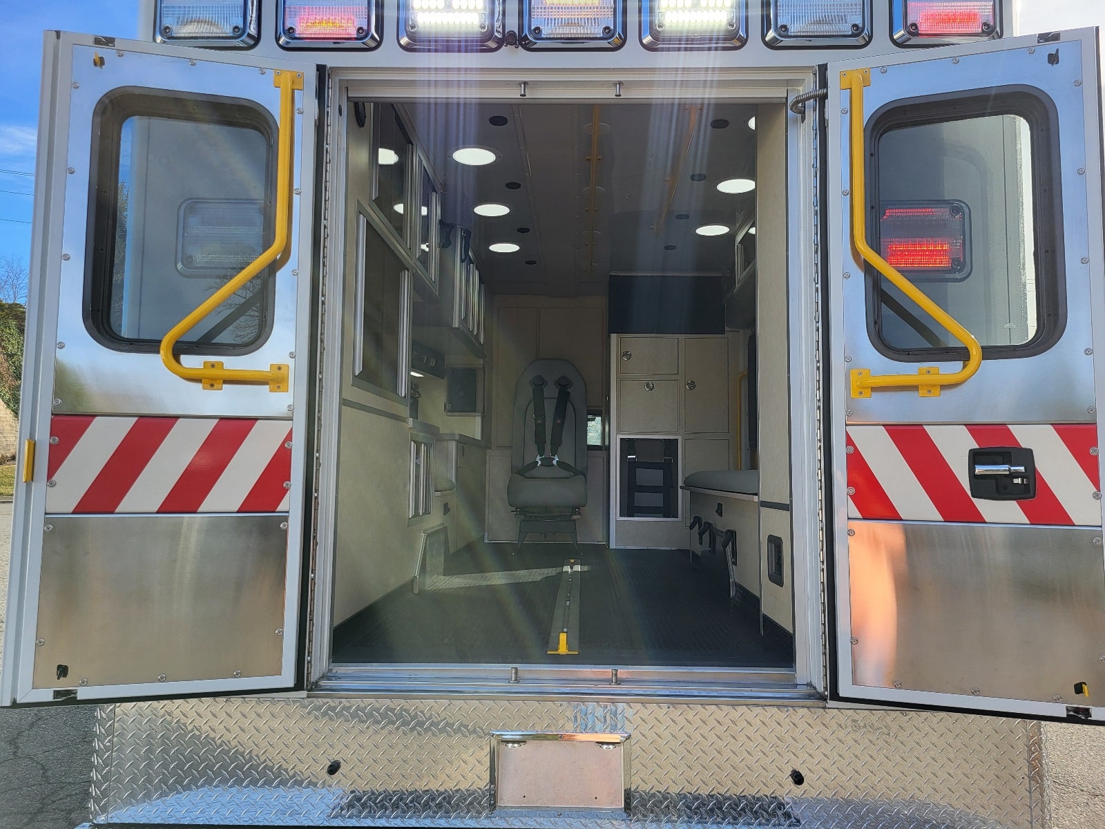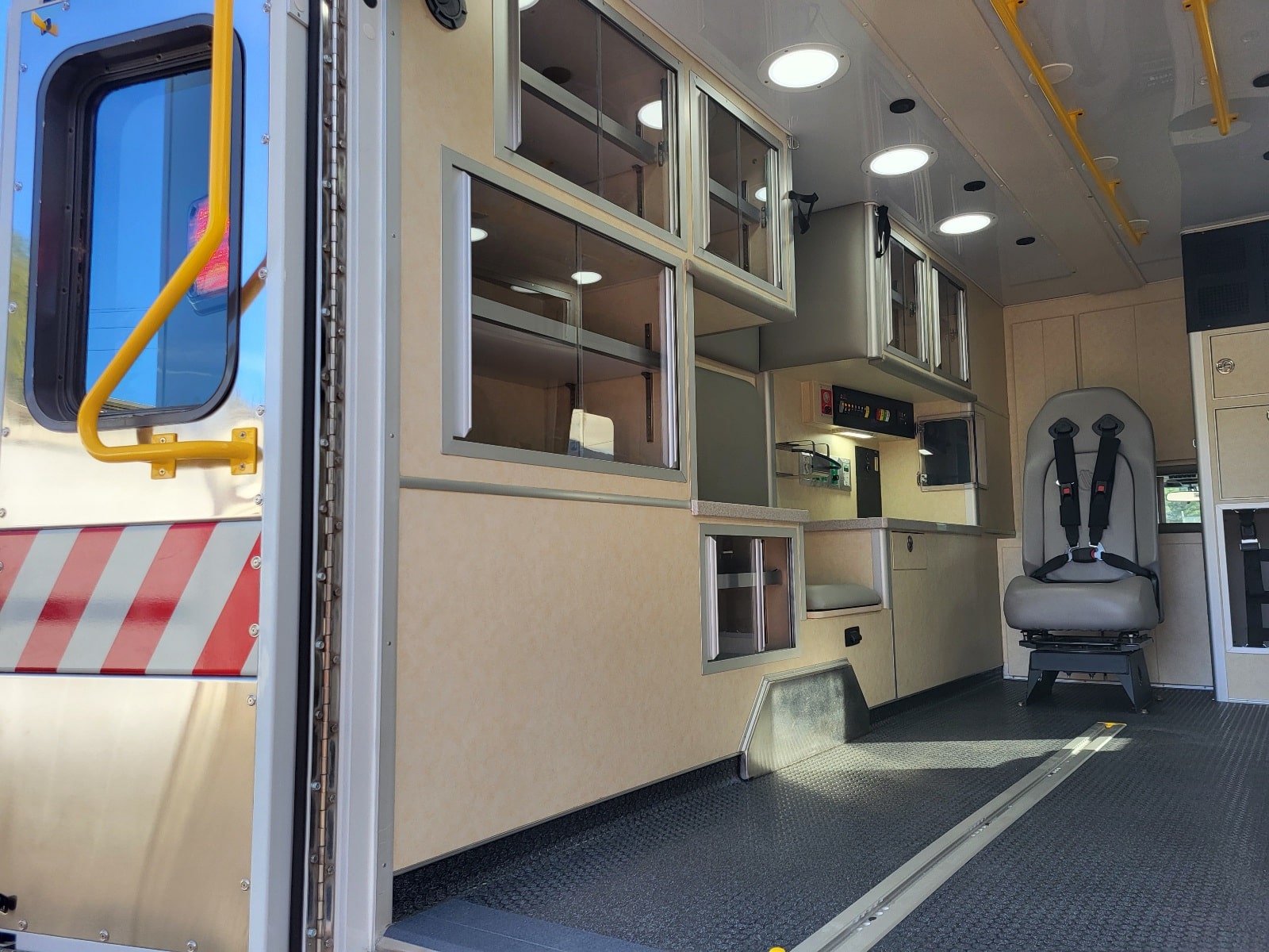 Special features: Liquid Spring system, electric O2 tank lift, Stryker Floor Plate with Wiring, curbside O2 access, vaulted HVAC, solid countertops.