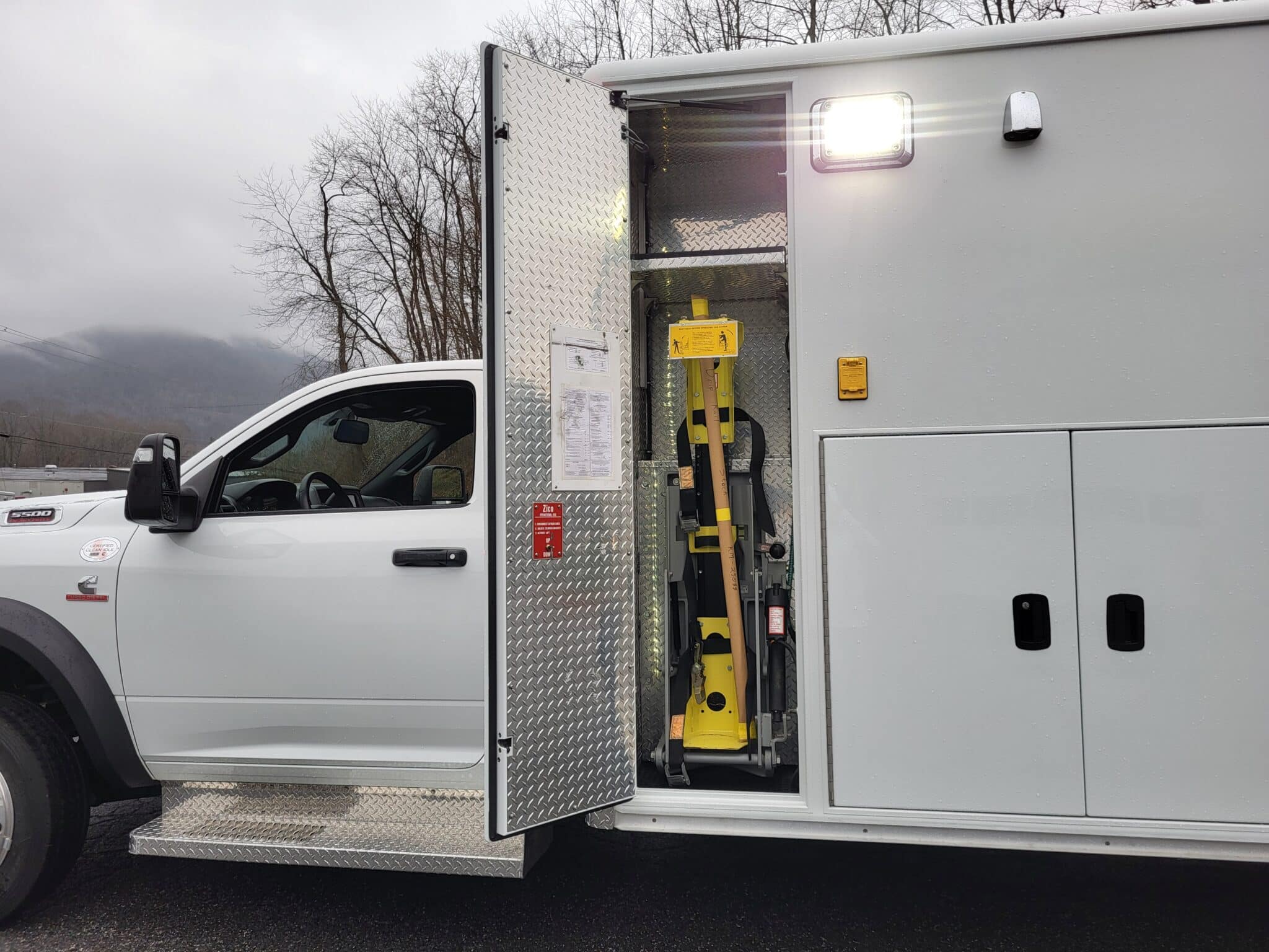New RAM 5500 4×4 Cummins diesel ambulance prep chassis. Professionally remounted Horton module.
